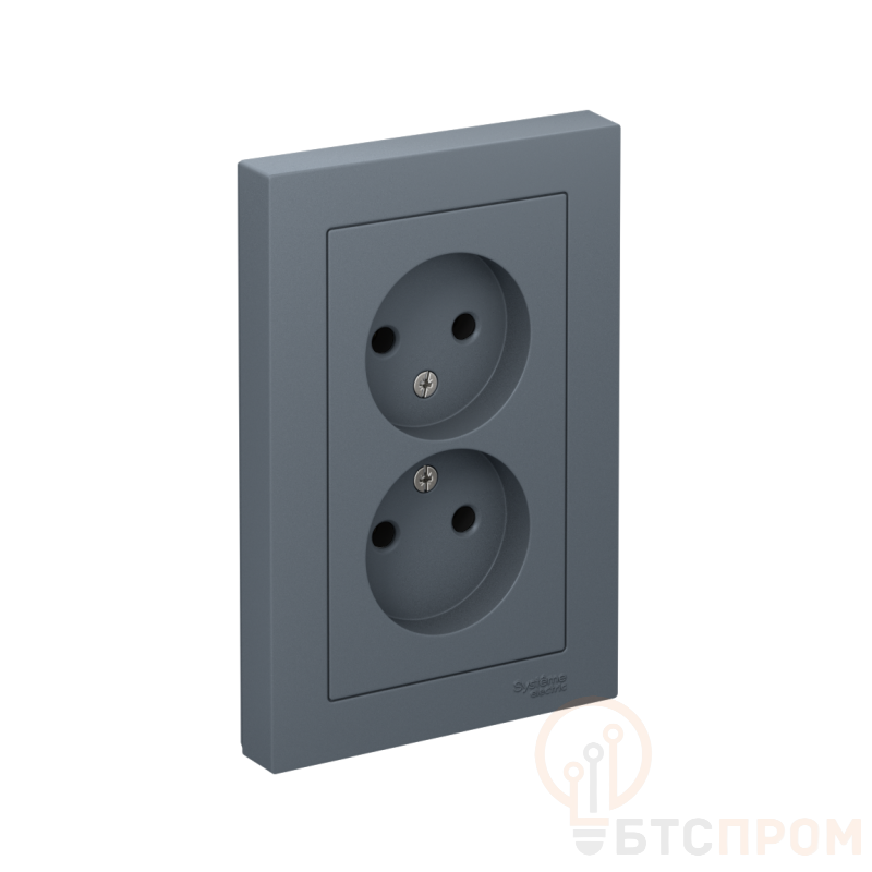 Розетка двойная Systeme Electric (ранее Schneider Electric) серии AtlasDesign (в сборе, цвет грифель) без заземления и без шторок подходит для сетей 250 В, на ток 16 А. - Лицевые детали из качественного ABS-пластика, устойчивого к царапинам и УФ-излучению. - Двойная розетка позволяет подключить два устройства в одном месте. - Изделие поставляется в комплекте с рамкой того же цвета. - Усиленные прямые монтажные лапки для лучшей фиксации механизма в монтажной коробке.