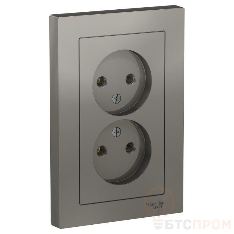 Розетка двойная Systeme Electric (ранее Schneider Electric) серии AtlasDesign (в сборе, цвет сталь) без заземления и без шторок подходит для сетей 250 В, на ток 16 А. - Лицевые детали из качественного ABS-пластика, устойчивого к царапинам и УФ-излучению. - Двойная розетка позволяет подключить два устройства в одном месте. - Усиленные прямые монтажные лапки для лучшей фиксации механизма в монтажной коробке.