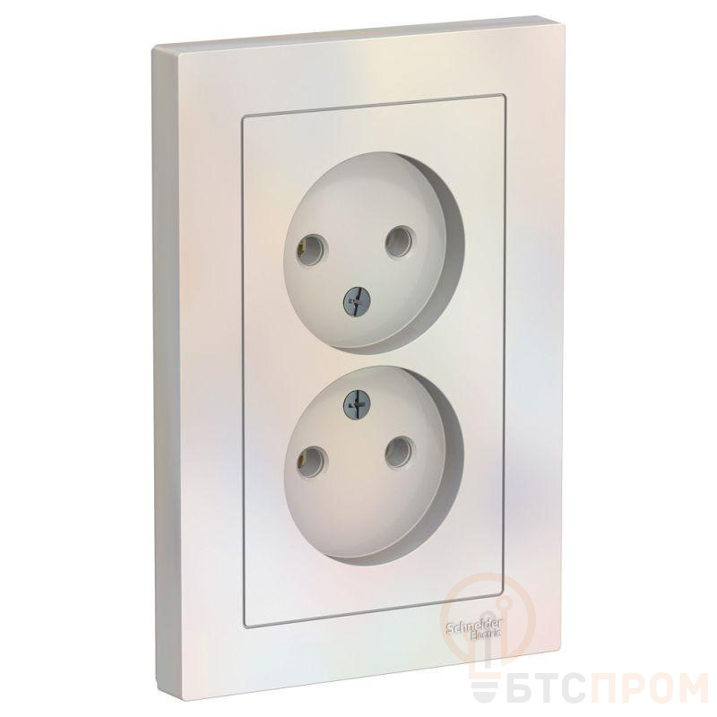 Розетка двойная Systeme Electric (ранее Schneider Electric) серии AtlasDesign (в сборе, цвет жемчуг) без заземления и без шторок подходит для сетей 250 В, на ток 16 А. - Лицевые детали из качественного ABS-пластика, устойчивого к царапинам и УФ-излучению. - Двойная розетка позволяет подключить два устройства в одном месте. - Изделие поставляется в комплекте с рамкой того же цвета.