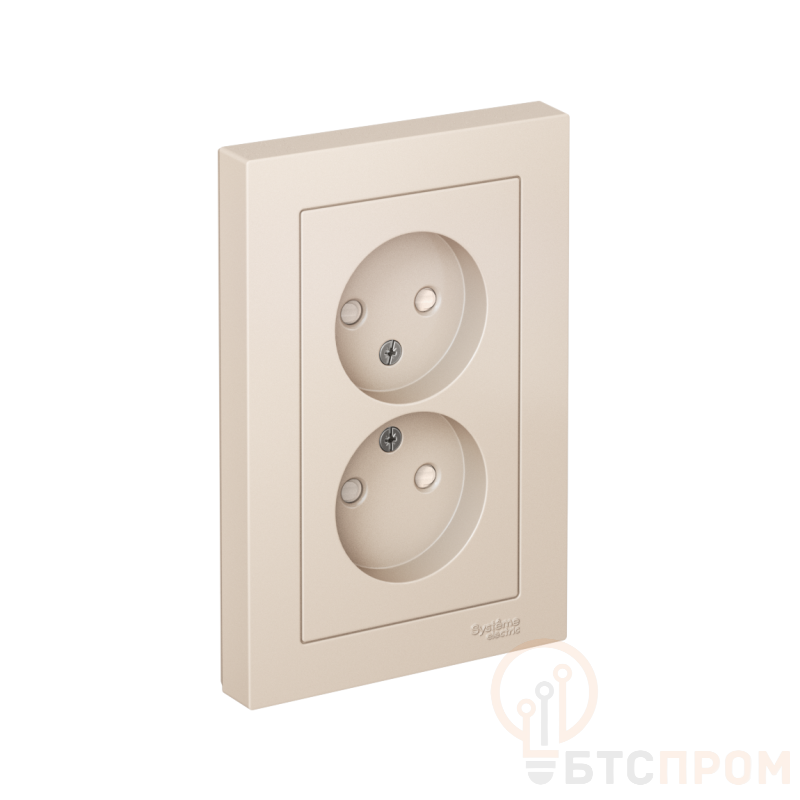 Розетка двойная Systeme Electric (ранее Schneider Electric) серии AtlasDesign (в сборе, цвет бежевый) без заземления со шторками подходит для сетей 250 В, на ток 16 А. - Лицевые детали из качественного ABS-пластика, устойчивого к царапинам и УФ-излучению. - Усиленные прямые монтажные лапки для лучшей фиксации механизма в монтажной коробке. - Двойная розетка позволяет подключить два устройства в одном месте. - Изделие поставляется в комплекте с рамкой того же цвета.