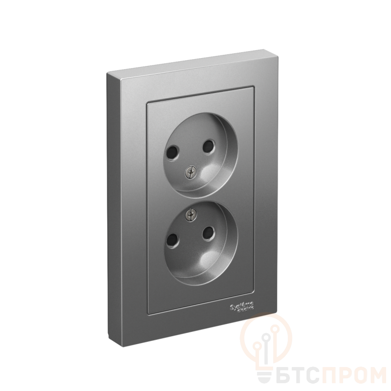 Розетка двойная Systeme Electric (ранее Schneider Electric) серии AtlasDesign (в сборе, цвет сталь) без заземления со шторками подходит для сетей 250 В, на ток 16 А. - Лицевые детали из качественного ABS-пластика, устойчивого к царапинам и УФ-излучению. - Двойная розетка позволяет подключить два устройства в одном месте. - Усиленные прямые монтажные лапки для лучшей фиксации механизма в монтажной коробке.