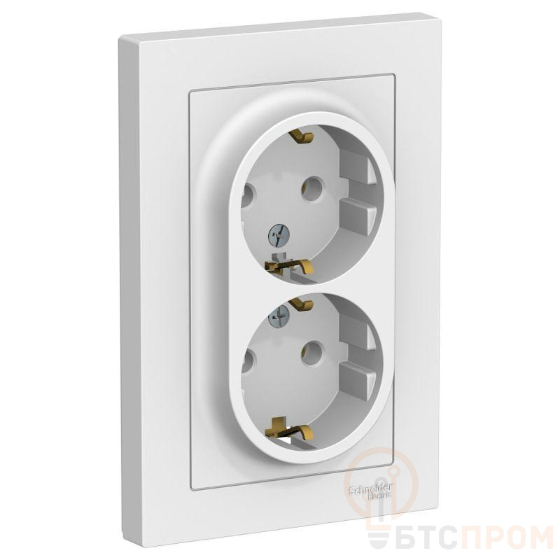 Розетка двойная Systeme Electric (ранее Schneider Electric) серии AtlasDesign (в сборе, цвет белый) с заземлением, без шторок подходит для сетей 250 В, на ток 16 А. - Пластик с ионами серебра обеспечивает антибактериальный эффект. - Заземляющий контакт обеспечивает дополнительную защиту от удара электрическим током. - Лицевые детали из качественного ABS-пластика, устойчивого к царапинам и УФ-излучению. - Двойная розетка позволяет подключить два устройства в одном месте. - Изделие поставляется в комплекте с рамкой того же цвета.
