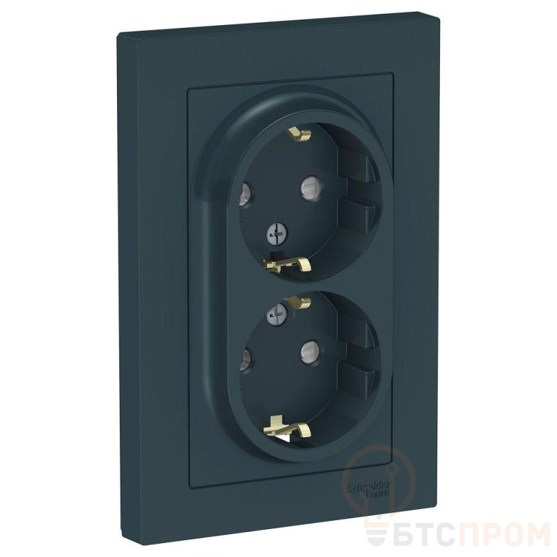 Розетка двойная Systeme Electric (ранее Schneider Electric) серии AtlasDesign (в сборе, цвет изумруд) с заземлением и шторками подходит для сетей 250 В, на ток 16 А. - Заземляющий контакт обеспечивает дополнительную защиту от удара электрическим током. - Лицевые детали из качественного ABS-пластика, устойчивого к царапинам и УФ-излучению. - Двойная розетка позволяет подключить два устройства в одном месте. - Изделие поставляется в комплекте с рамкой того же цвета.