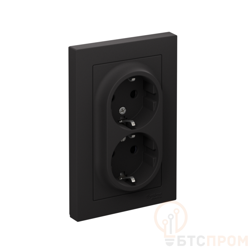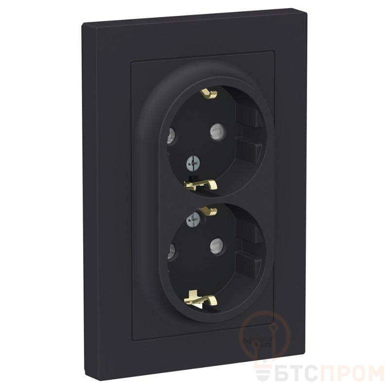 Розетка двойная Systeme Electric (ранее Schneider Electric) серии AtlasDesign (в сборе, цвет карбон) с заземлением и шторками подходит для сетей 250 В, на ток 16 А. - Заземляющий контакт обеспечивает дополнительную защиту от удара электрическим током. - Двойная розетка позволяет подключить два устройства в одном месте. - Изделие поставляется в комплекте с рамкой того же цвета. - Благодаря покрытию «soft touch» к изделию приятно прикасаться.