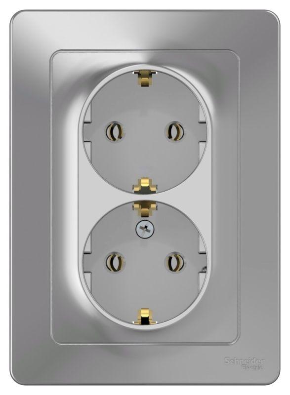 Розетка Systeme Electric (ранее Schneider Electric) BLANCA (алюминий, скрытой установки) двухместная, с заземлением, без шторок предназначена для сетей до 250В, на ток до 16А. Двухместная розетка позволяет подключить два устройства в одном месте. Заземление обеспечивает безопасность при косвенном прикосновении. Она изготовлена из ABS-пластика, проста в установке и удобна в применении.