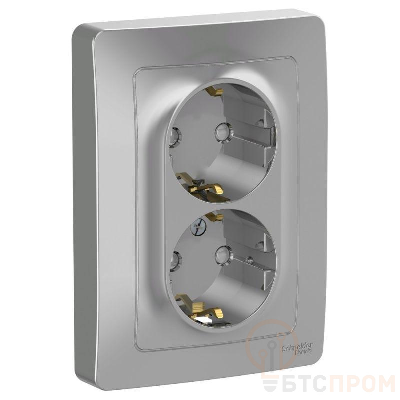 Розетка Systeme Electric (ранее Schneider Electric) BLANCA (алюминий, скрытой установки) двухместная, с заземлением, шторками предназначена для сетей до 250В, на ток до 16А. Двухместная розетка позволяет подключить два устройства в одном месте. Шторки и заземление обеспечивают дополнительную безопасность. Корпус изделия выполнен из ABS-пластика.