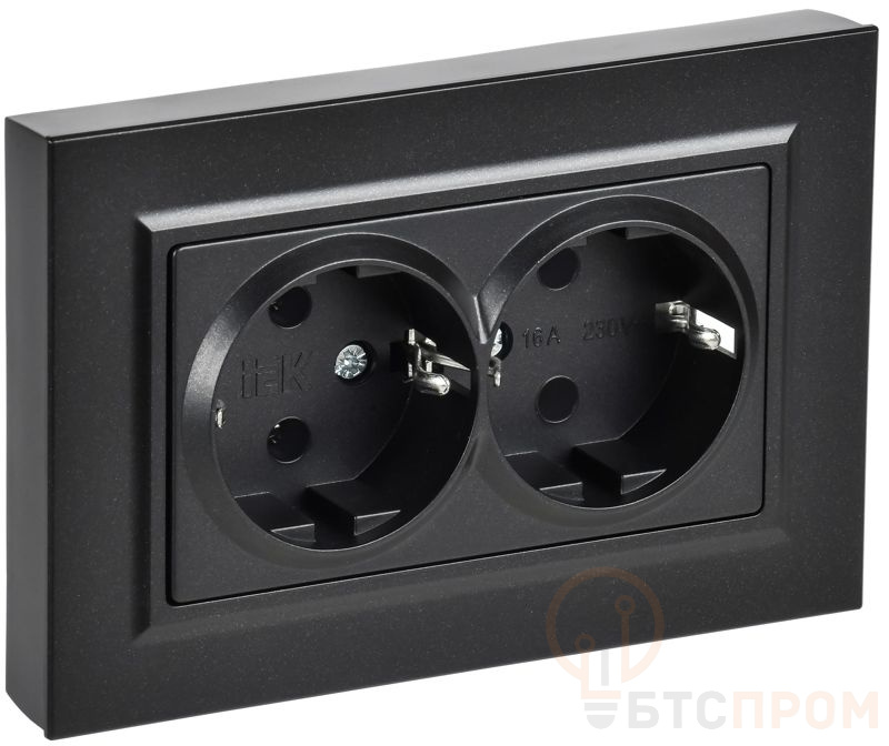 Розетка 2-м СП BRITE РСПл12-3-БрЧ 16А в сборе с заземл. без защ. шторок плоская черн. IEK BR-R27-16-K02-F
