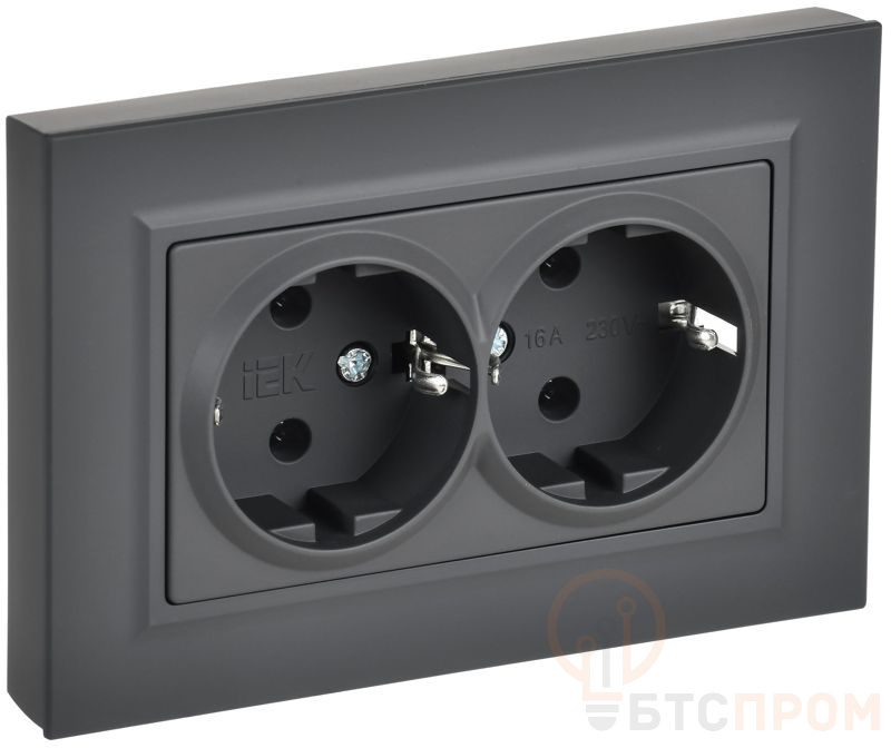 Розетка 2-м СП BRITE РСПл12-3-БрГ 16А в сборе с заземл. без защ. шторок плоская графит IEK BR-R27-16-K53-F