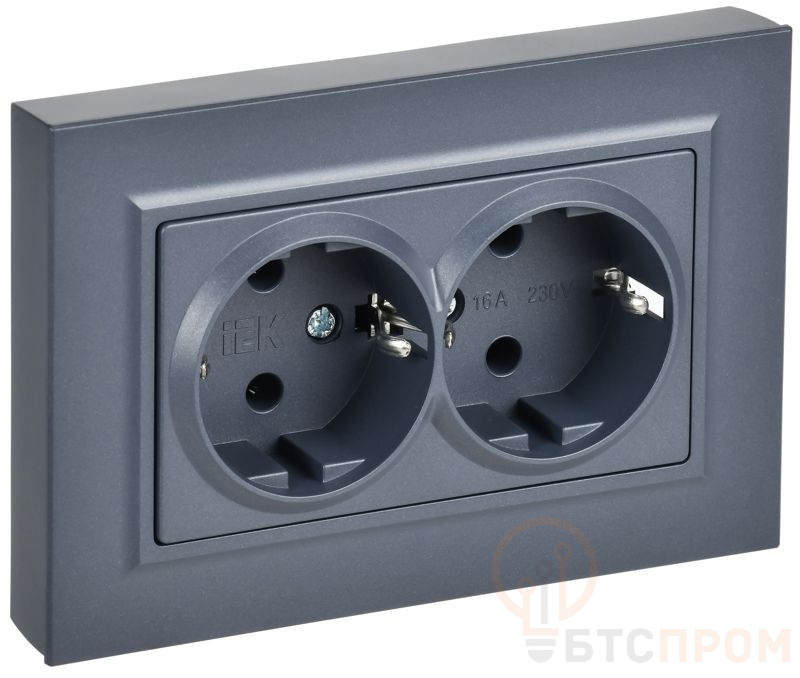 Розетка 2-м СП BRITE РСПл12-3-БрМ 16А в сборе с заземл. без защ. шторок плоская маренго IEK BR-R27-16-K35-F