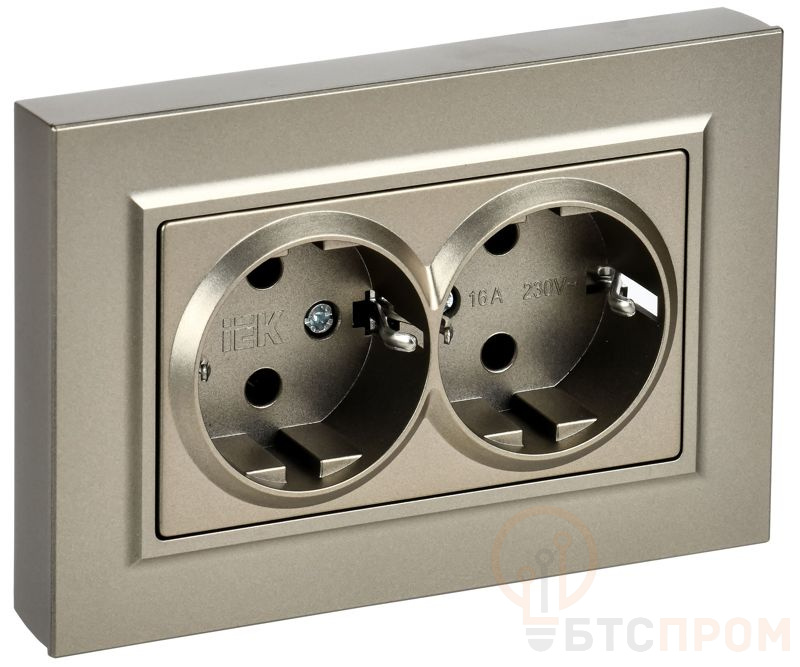 Розетка 2-м СП BRITE РСПл12-3-БрШ 16А в сборе с заземл. без защ. шторок плоская шампань IEK BR-R27-16-K37-F