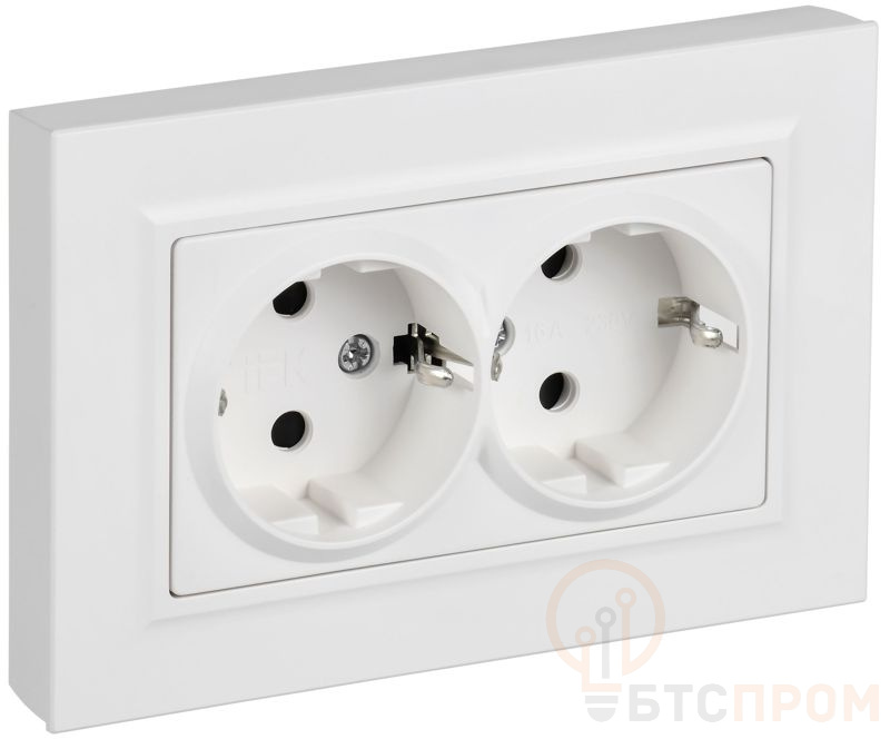 Розетка 2-м СП BRITE РСшПл12-3-БрАБ 16А в сборе с заземл. защ. шторки плоская арктич. бел. IEK BR-R28-16-K91-F