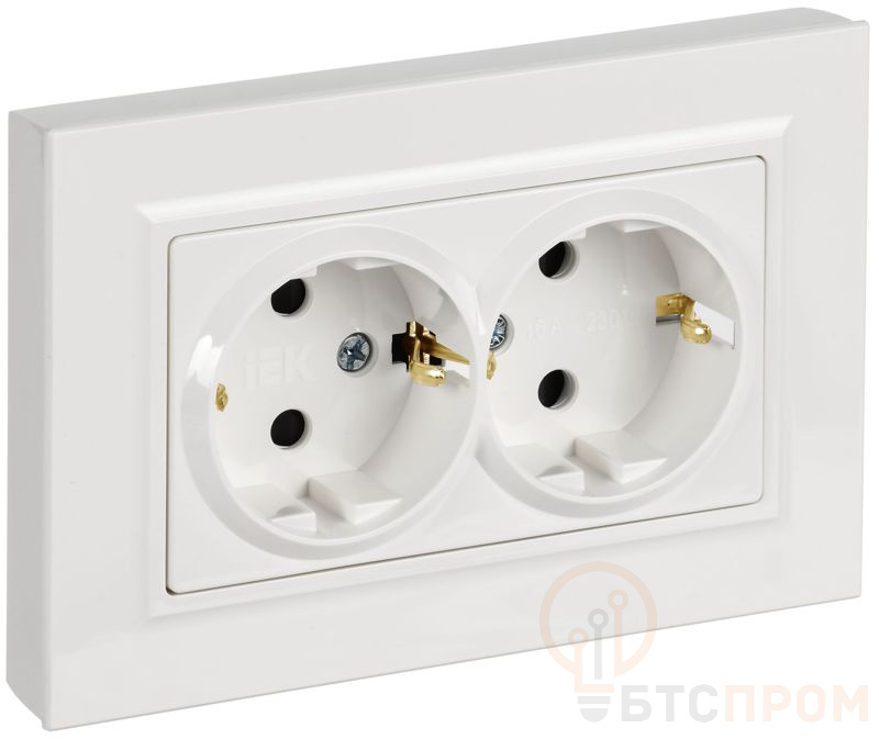 Розетка 2-м СП BRITE РСшПл12-3-БрБ 16А в сборе с заземл. защ. шторки плоская бел. IEK BR-R28-16-K01-F-PRO