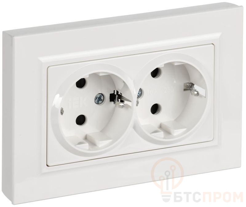 Розетка 2-м СП BRITE РСшПл12-3-БрБ 16А в сборе с заземл. защ. шторки плоская бел. IEK BR-R28-16-K01-F