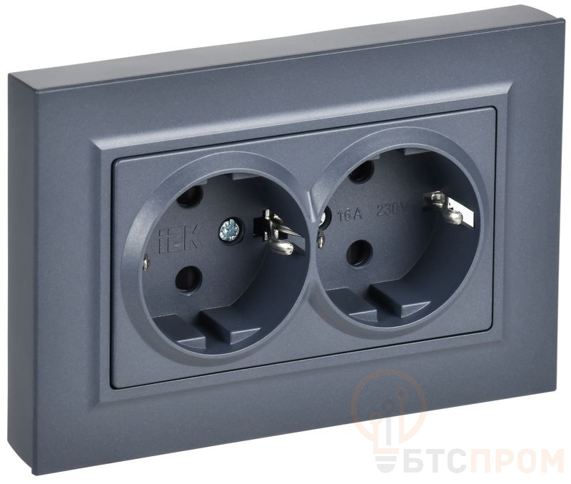 Корпус изготовлен из прочного термостойкого пластика ударопрочного исполнения, цвет — маренго (темно-серый). Конструкция включает заземляющий контакт и латунные винтовые зажимы для надежного подключения проводов. Монтаж осуществляется в стандартные установочные коробки. Розетка идеально подходит для установки в офисах, квартирах, гостиницах и общественных зданиях, гармонично сочетаясь с серией электроустановочных изделий IEK BRITE.