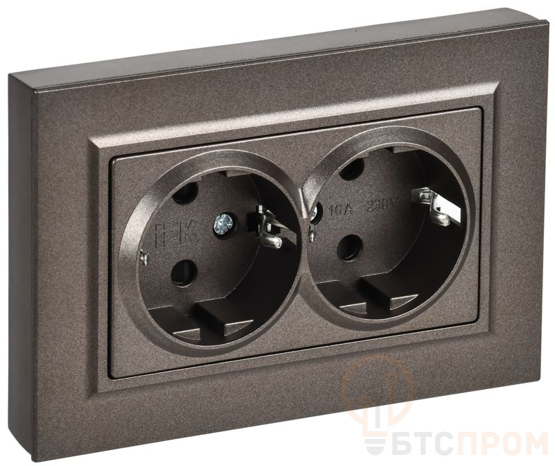 Розетка 2-м СП BRITE РСшПл12-3-БрТБ 16А в сборе с заземл. защ. шторки плоская бронза IEK BR-R28-16-K45-F
