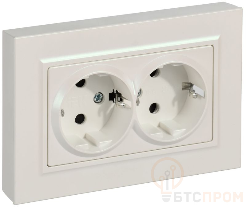 Розетка 2-м СП BRITE РСшПл12-3-БрЖ 16А в сборе с заземл. защ. шторки плоская жемчуж. IEK BR-R28-16-K36-F