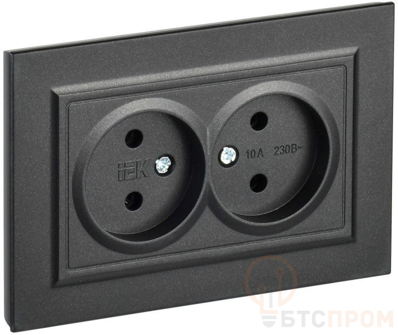 розетка 2-м сп brite рс12-2-брг 10а в сборе без заземл. без защ. шторок графит iek br-r20-10-k53-f от BTSprom.by