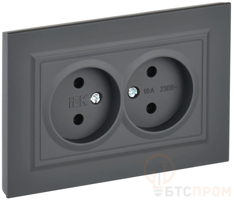 Розетка 2-м СП BRITE РС12-2-БрГ 10А в сборе без заземл. без защ. шторок графит IEK BR-R20-10-K53-F фото в каталоге от BTSprom.by