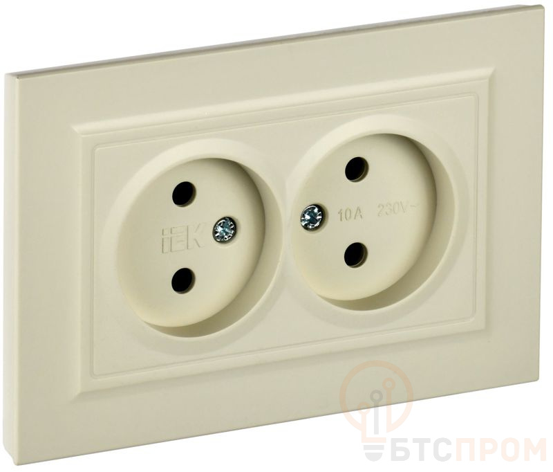 Розетка 2-м СП BRITE РС12-2-БрКр 10А в сборе без заземл. без защ. шторок беж. IEK BR-R20-10-K10-F фото в каталоге от BTSprom.by