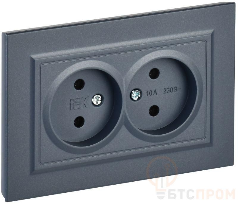 розетка 2-м сп brite рс12-2-брг 10а в сборе без заземл. без защ. шторок графит iek br-r20-10-k53-f от BTSprom.by