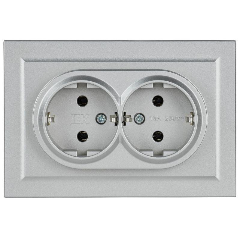 Розетка 2-м СП BRITE РС12-3-БрА 16А в сборе с заземл. без защ. шторок алюм. IEK BR-R21-16-K47-F фото в каталоге от BTSprom.by