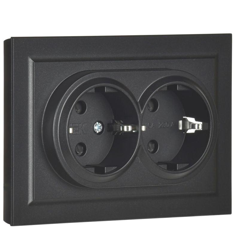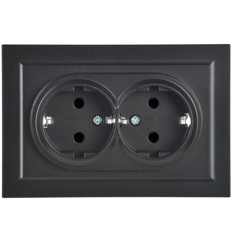 Розетка 2-м СП BRITE РС12-3-БрЧ 16А в сборе с заземл. без защ. шторок черн. IEK BR-R21-16-K02-F фото в каталоге от BTSprom.by