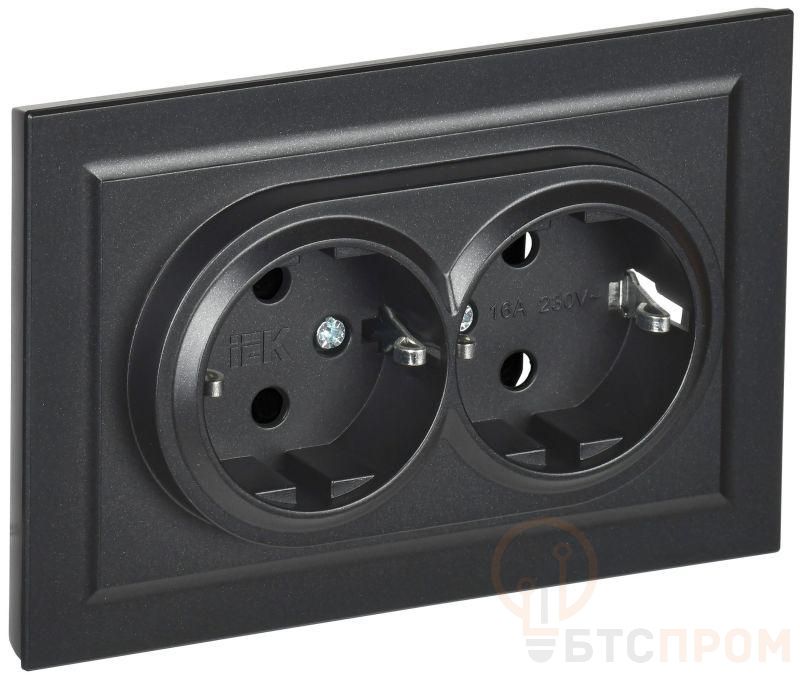 Розетка 2-м СП BRITE РС12-3-БрГ 16А в сборе с заземл. без защ. шторок графит IEK BR-R21-16-K53-F