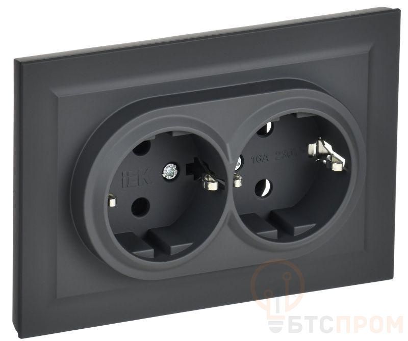 Розетка 2-м СП BRITE РС12-3-БрГ 16А в сборе с заземл. без защ. шторок графит IEK BR-R21-16-K53-F фото в каталоге от BTSprom.by