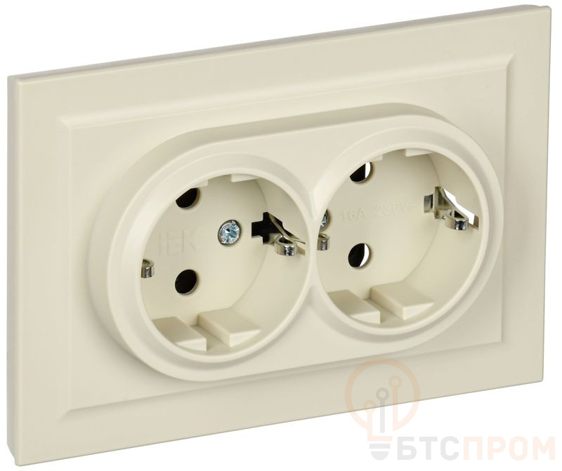 Розетка 2-м СП BRITE РС12-3-БрКр 16А в сборе с заземл. без защ. шторок беж. IEK BR-R21-16-K10-F фото в каталоге от BTSprom.by