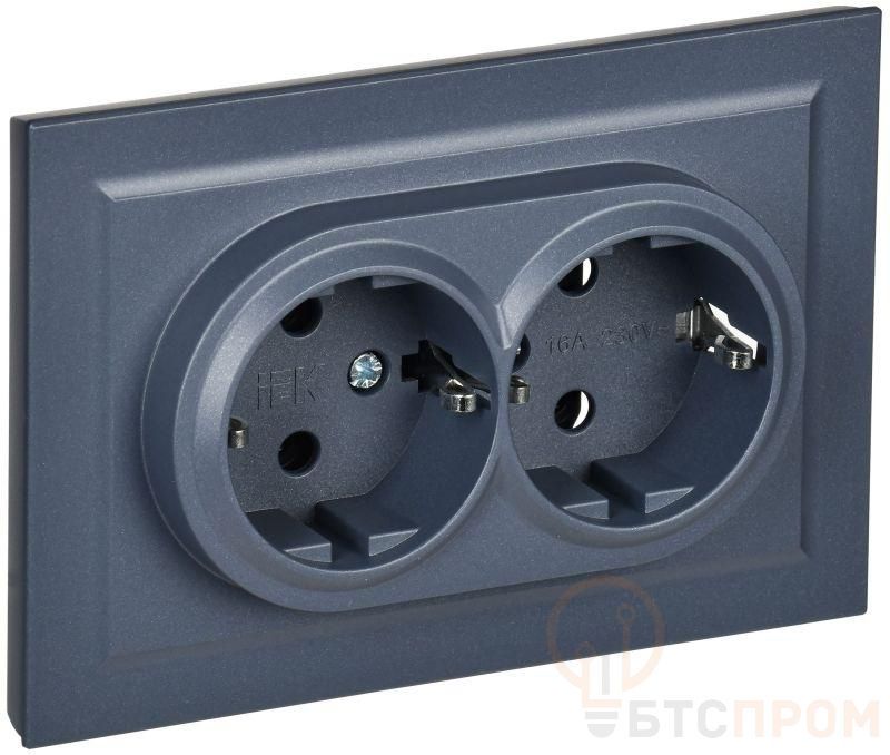 Розетка 2-м СП BRITE РС12-3-БрГ 16А в сборе с заземл. без защ. шторок графит IEK BR-R21-16-K53-F