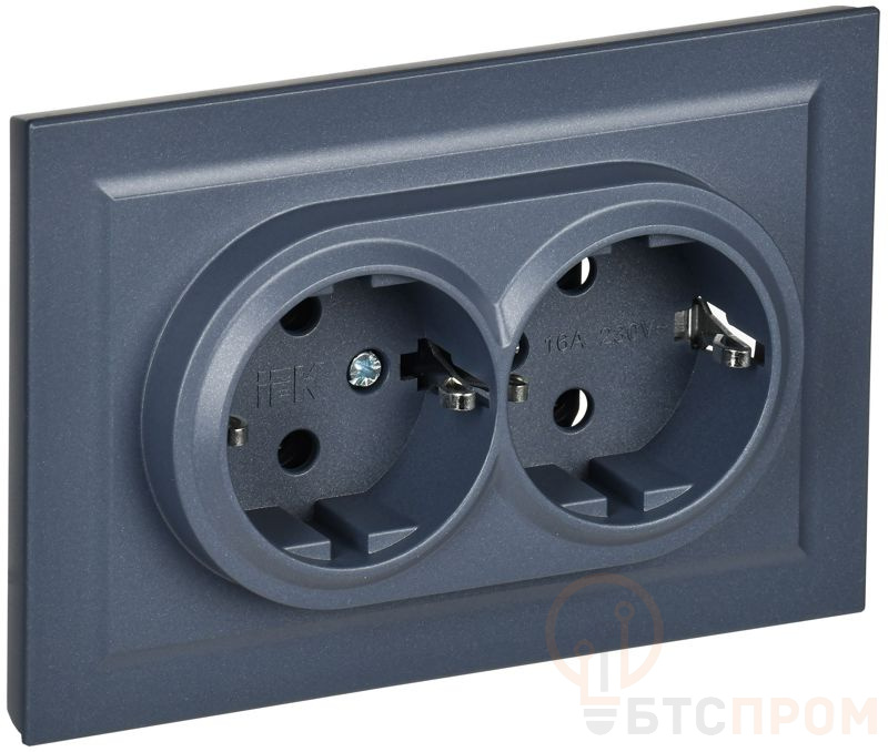 розетка 2-м сп brite рс12-3-брг 16а в сборе с заземл. без защ. шторок графит iek br-r21-16-k53-f от BTSprom.by