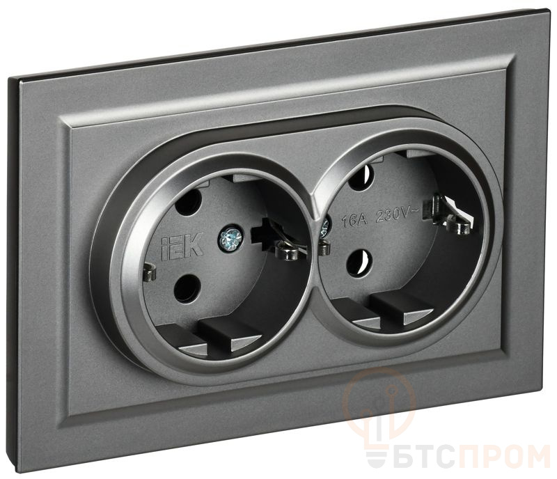 Розетка 2-м СП BRITE РС12-3-БрС 16А в сборе с заземл. без защ. шторок сталь IEK BR-R21-16-K46-F фото в каталоге от BTSprom.by