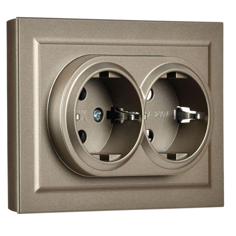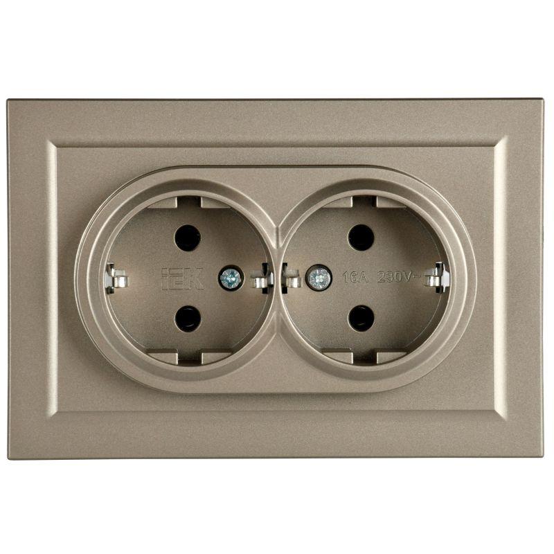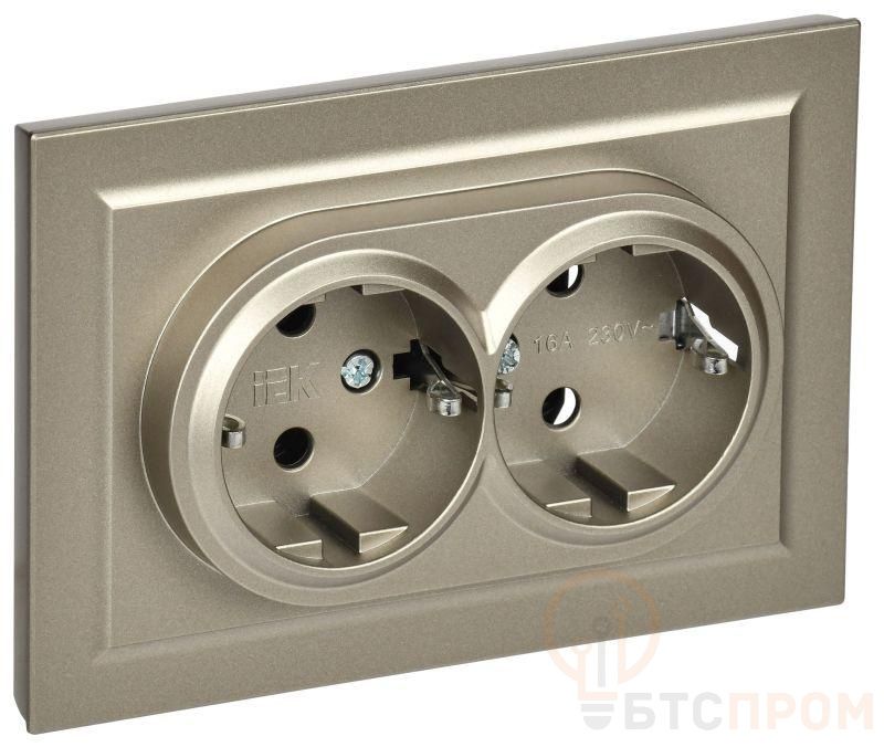 –Розетка 2-м СП BRITE РС12-3-БрШ 16А в сборе с заземл. без защ. шторок шампань IEK BR-R21-16-K37-F