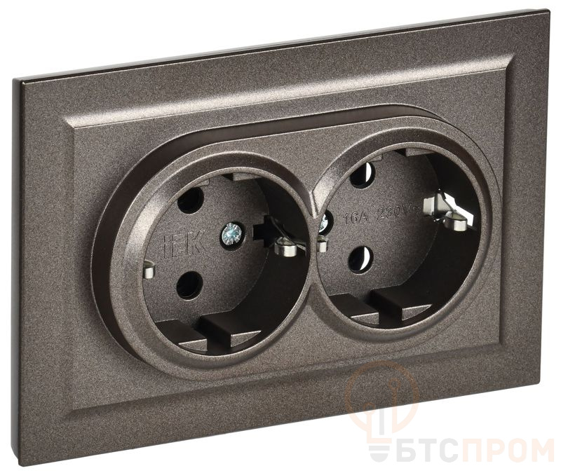 Розетка 2-м СП BRITE РС12-3-БрТБ 16А в сборе с заземл. без защ. шторок бронза IEK BR-R21-16-K45-F фото в каталоге от BTSprom.by