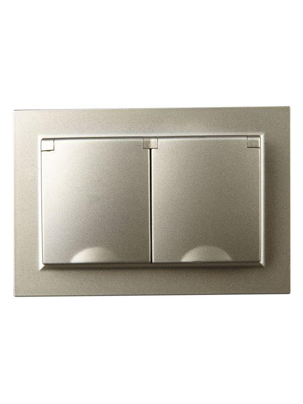 –Розетка 2-м СП BRITE РСбш12-3-44-БрШ 16А в сборе IP44 с крышкой шампань IEK BR-R26-16-44-K37-F