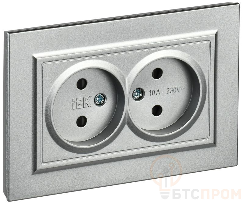 –Розетка 2-м СП BRITE РСш12-2-БрА 10А в сборе без заземл. защ. шторки алюм. IEK BR-R23-10-K47-F