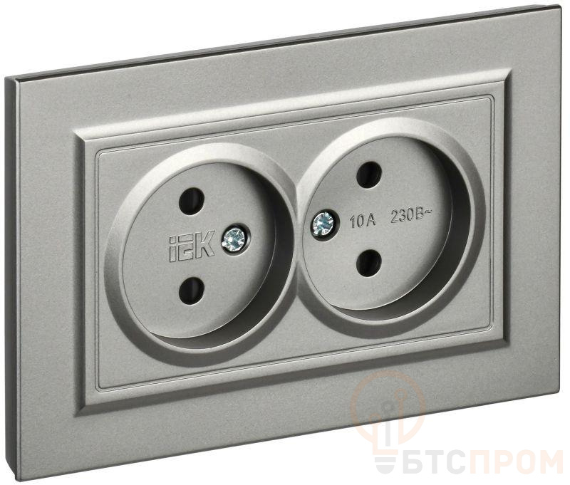–Розетка 2-м СП BRITE РСш12-2-БрС 10А в сборе без заземл. защ. шторки сталь IEK BR-R23-10-K46-F