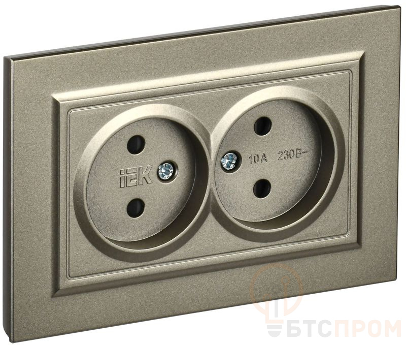 –Розетка 2-м СП BRITE РСш12-2-БрШ 10А в сборе без заземл. защ. шторки шампань IEK BR-R23-10-K37-F