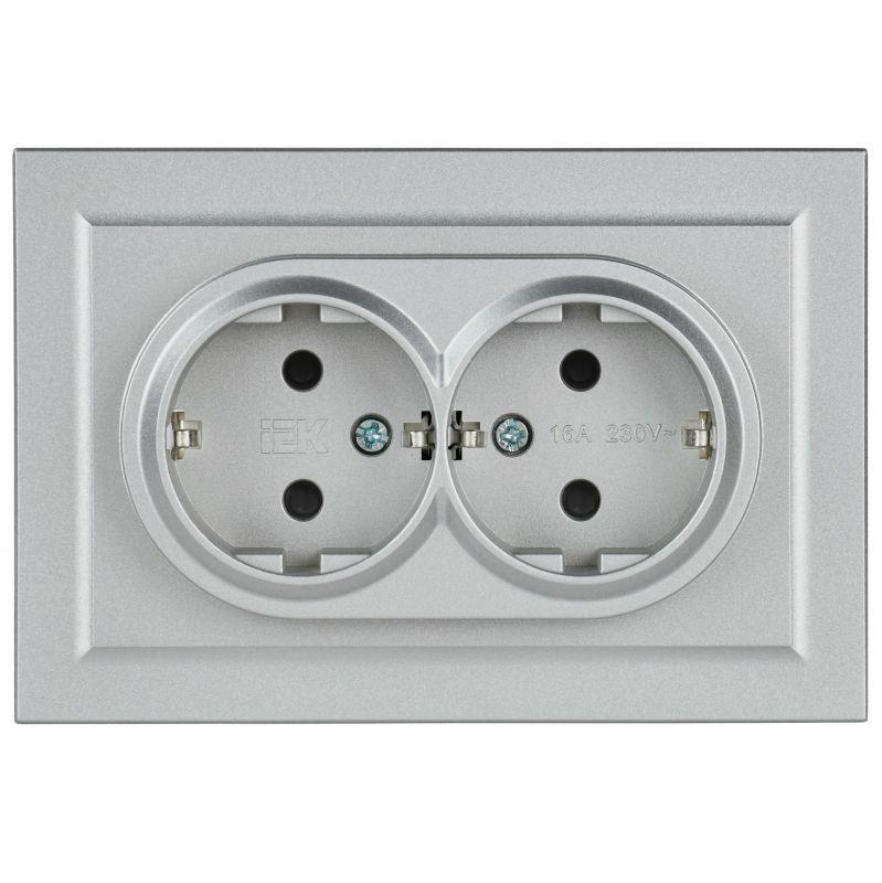 Розетка 2-м СП BRITE РС12-3-БрС 16А в сборе с заземл. без защ. шторок сталь IEK BR-R21-16-K46-F