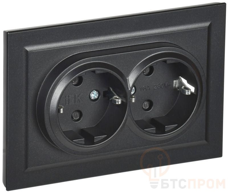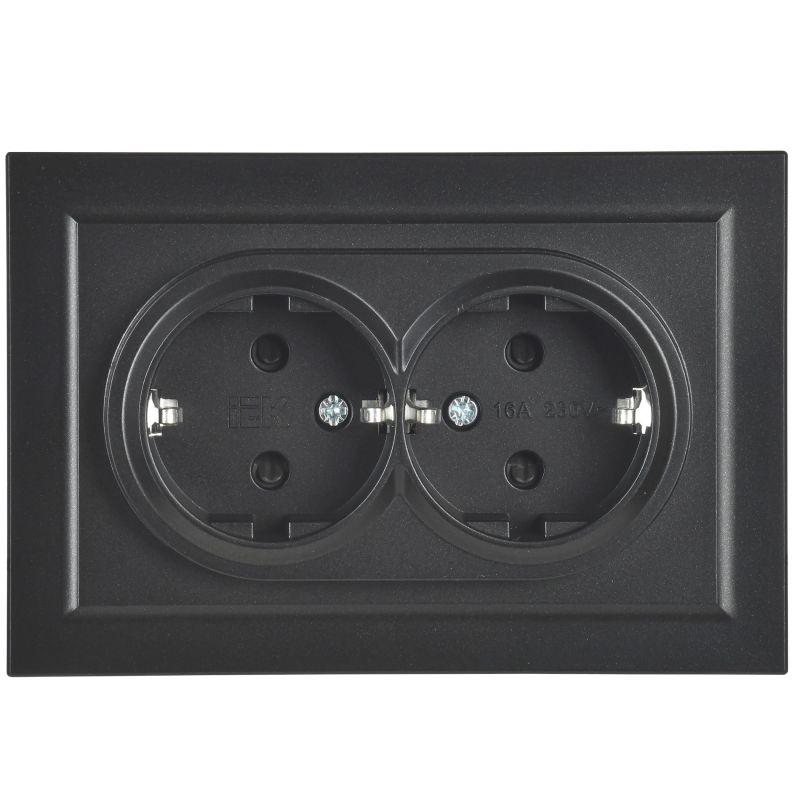 Розетка 2-м СП BRITE РСш12-3-БрЧ 16А в сборе с заземл. защ. шторки черн. IEK BR-R24-16-K02-F фото в каталоге от BTSprom.by