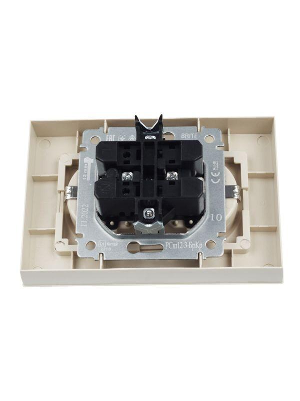 Розетка 2-м СП BRITE РСш12-3-БрКр 16А в сборе с заземл. защ. шторки беж. IEK BR-R24-16-K10-F
