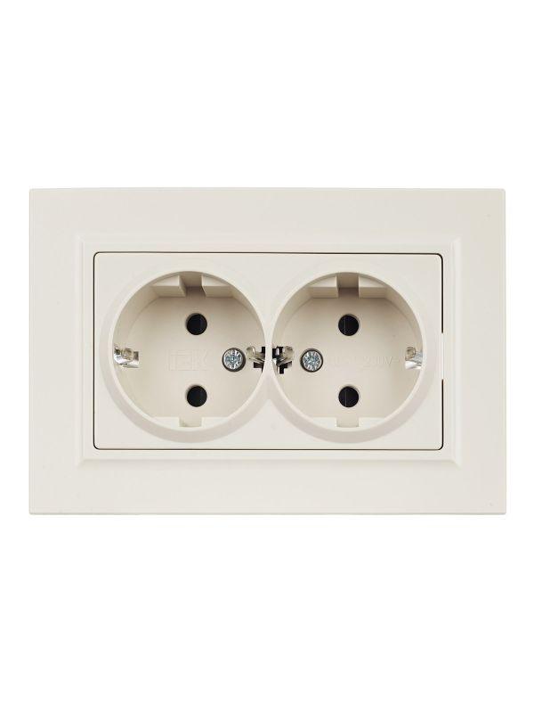 –Розетка 2-м СП BRITE РСш12-3-БрКр 16А в сборе с заземл. защ. шторки беж. IEK BR-R24-16-K10-F