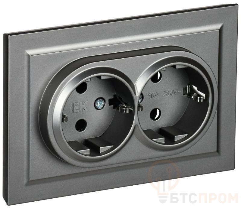 розетка 2-м сп brite рсш12-3-брг 16а в сборе с заземл. защ. шторки графит iek br-r24-16-k53-f от BTSprom.by