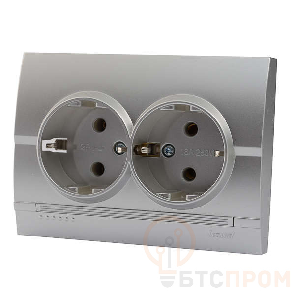 Ключевой особенностью является наличие заземляющего контакта, который обеспечивает безопасность эксплуатации, защищая пользователей от поражения электрическим током. Корпус выполнен из прочного металла с эффектным серебристым покрытием, которое гармонично сочетается с декоративной рамкой. Степень защиты IP20 указывает на то, что розетка предназначена для использования внутри сухих помещений и требует защиты от прямого попадания влаги и пыли.