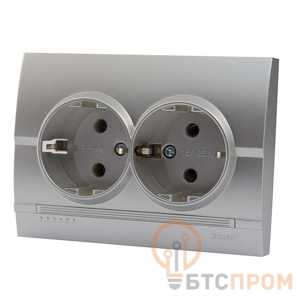 Розетка 2-м СП Deriy 16А IP20 с заземл. серебр. метал. LEZARD 702-2828-127 фото в каталоге от BTSprom.by