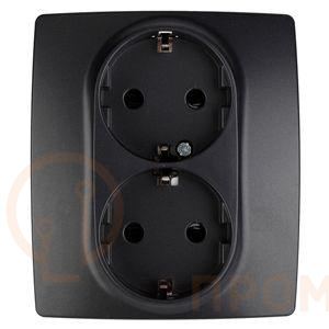 Розетка 2X2P+E Schuko со шторками, 16АХ-250В, Эра12, антрацит