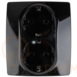 Розетка 2X2P+E Schuko со шторками, 16АХ-250В, Эра12, чёрный