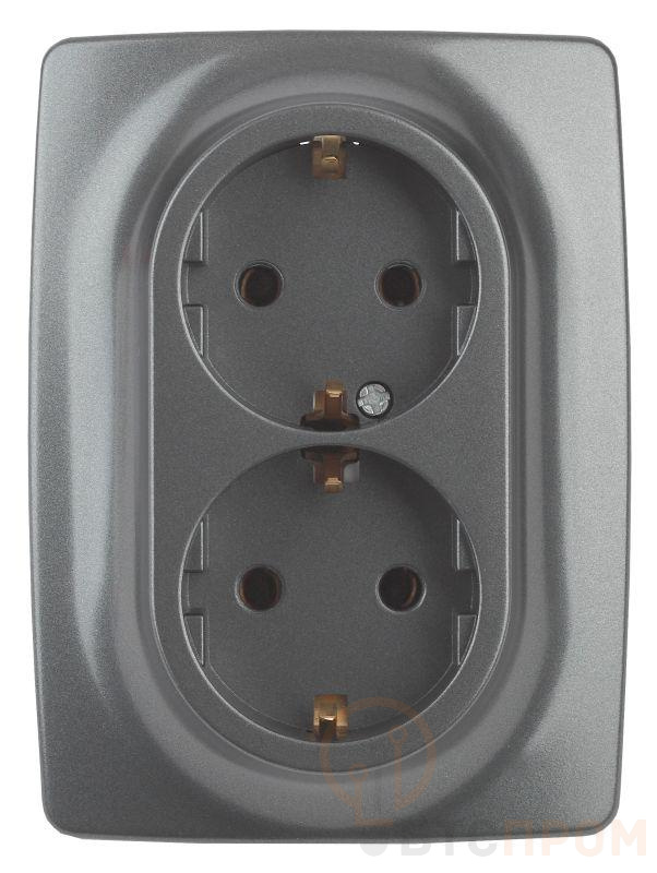 Розетка двойная с заземлением серии Эра 12 скрытой установки механизм цвет графит 12-2106-12. Номинальные характеристики 16А 250В . Сделана из поликарбоната, оснащёна автоматическими клеммами для быстрй и надёжной фиксации жил кабеля в механиме. Парные клеммы обеспечивают соединение шлейфом. Монтаж в подрозетник производится и на лапки, и на винты. Рамки приобретаются отдельно. Рамки Эра 12: 1 пост 12-5001-хх, 2 поста 12-5002-хх, 3 поста 12-5003-хх, 4 поста 12-5004-хх, 5 постов 12-5005-хх. Рамки Эра 12 Сатин: 1 пост 12-5101-хх, 2 поста 12-5102-хх, 3 поста 12-5103-хх, 4 поста 12-5104-хх, 5 постов - 12-5105-хх (хх - код цвета: 01-белый, 02-слоновая кость, 03-алюминий, 04-шампань, 05-антрацит, 06-чёрный, 07-ольха(белёный дуб-сатин), 08-вишня, 09-дуб, 10-венге, 11-сосна, 21-жёлтый, 22-оранжевый, 23-красный, 24-охра, 25-бордо, 26-лайм, 27-зелёный, 28-голубой, 29-синий).