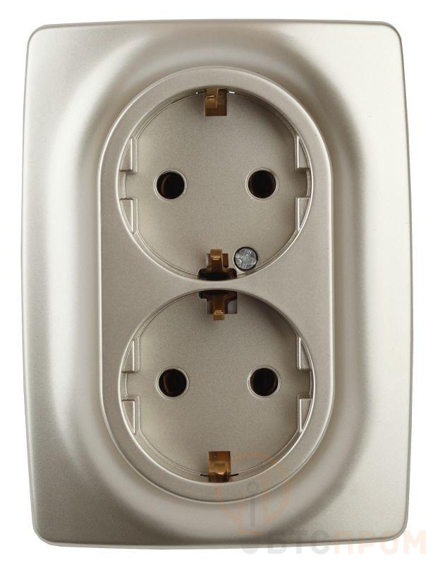 Розетка двойная с заземлением со шторками серии Эра 12 скрытой установки цвет шампань 12-2108-04. Номинальные хар-ки 16А 250В . Сделана из поликарбоната, оснащёна автоматическими клеммами для быстрй и надёжной фиксации жил кабеля в механиме. Парные клеммы обеспечивают соединение шлейфом. Монтаж в подрозетник производится и на лапки, и на винты. Рамки приобретаются отдельно.
