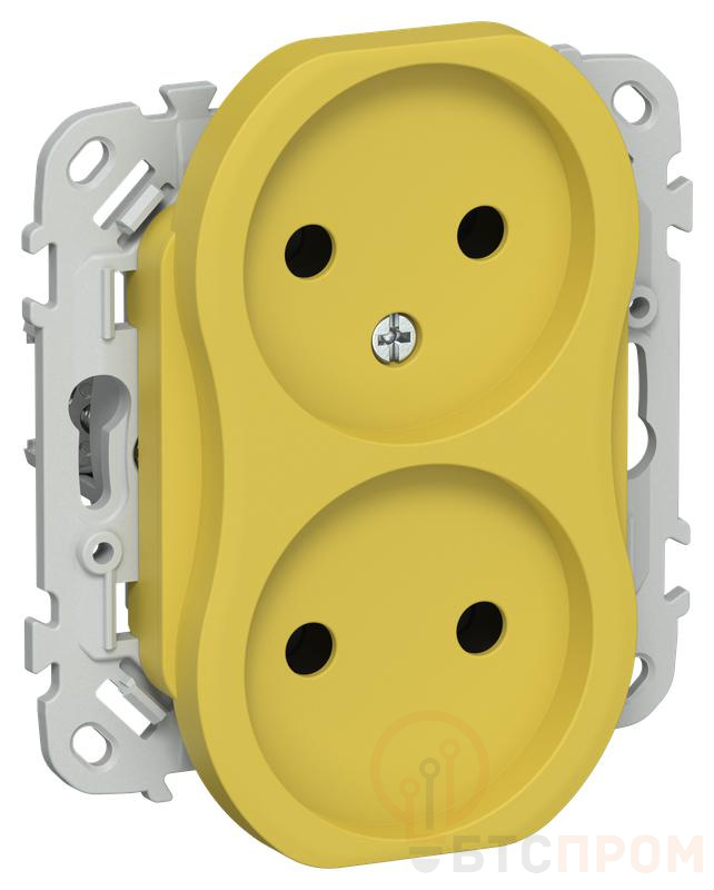 Розетка 2-м СП FLITE РС02-1-ФлЖК 10А без заземл. без защ. шторок безвинтовое крепление механизм желт. карри IEK FI-R20-10-1-K44
